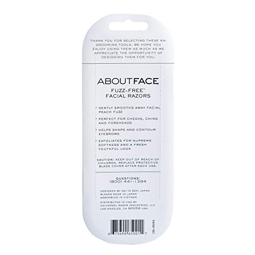 Exfoliate, shave and smooth your face at home with the About Face Fuzz-Free Facial Razors. Made from premium Japanese steel, these facial blades offer salon results without the premium price for an elevated skincare routine. Use to shave any unwanted facial hair or peach fuzz on your cheeks, sideburns, chin and neck, or use as an eyebrow shaper to groom unruly brows. Includes 3 face razors and a safety guard to prevent cuts and irritation, so you can experience glowing, fresh skin without nicks or bumps. Ease dry patches, minimize uneven skin tone and promote a higher rate of skin cell turnover with Fuzz-Free Facial Razors. Suitable for all skin types and both fine or coarse hair, these beauty groomers are ideal for shaping, grooming and exfoliating. At Kai USA, we're on a mission to provide our customers with the best experience, offering high-quality products, state-of-the-art technology and a dedication to innovation.