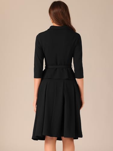 Allegra K Business 2 Piece Suit Set for Women's 3/4 Sleeve Button Down Blazer pleats Skirts