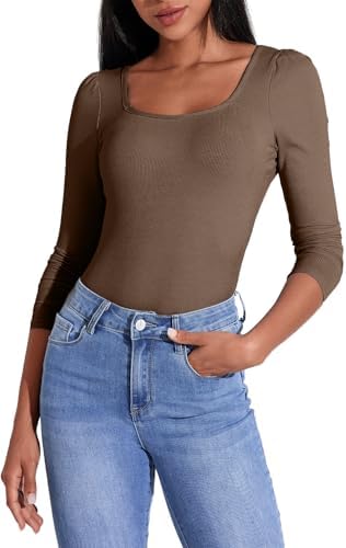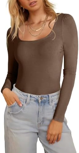 Allimy Women's Square Neck Ribbed Tops - Embrace the Elegant Square Neck Design
