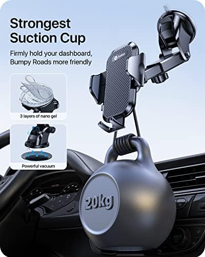 So far I've had 0 problems with this product. I've adhered it to the windshield, the dashboard (using the mount it comes with), and the air vent. It's on a Ford F-150, and the vent rotates 360 degrees and is shaped in a circle. I used the vent first just to see because typically I don't like the phone mounted there anyways with other mounts I've had since they don't always hold the phone well, especially when hitting bumps. But the vent clip held up well in all situations while driving. I did this for 3 days since instructions recommended waiting 3 days after adhering the pad to the dash to putting the mount onto it. (I assume the weight of the phone may take it off if not given the proper amount of time to settle into wherever you place it).-Anyhow, the vent clip worked perfectly. Even with my 360 air vent. It's long enough and strong enough when you tighten it as necessary.-The windshield, no problem at all.-The dash mount was my real goal. After waiting the 3 days as recommended in the product instructions, I fixed the mount and the phone to it. Bumpy roads, potholes, all non-issue. The suction is good. (I'd say incredible, but that's a strong word for such an item). I have it mounted extended to 95% of it's maximum distance putting it almost parallel to the distance my steering wheel reaches. Works great.Very happy with the product and would certainly recommend it to anyone else who was interested in having a phone mount in their car. Long drives, short drives, it makes using the phone while driving much safer and very convenient when using the GPS which I use often in my line of work.Very pleased. Will be getting another for my wife's car now that I know it's a reliable product.