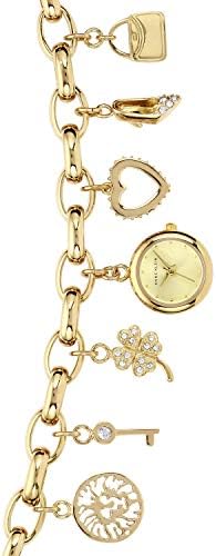 Anne Klein Women's Premium Crystal Accented Gold-Tone Charm Bracelet Watch, 10/7604CHRM