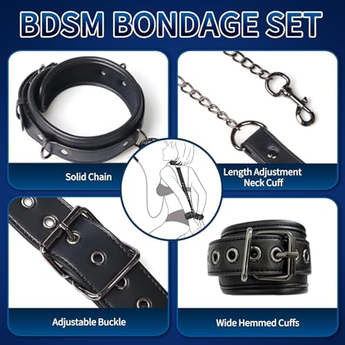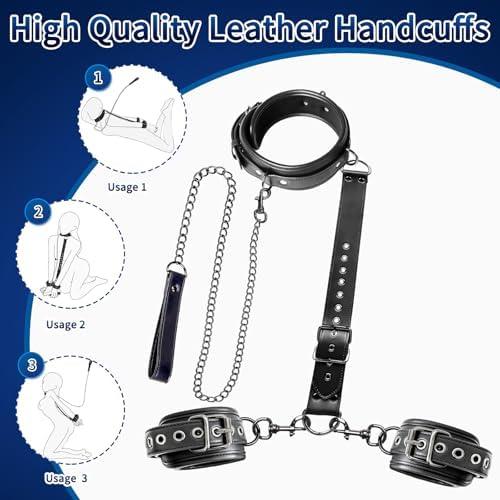 BDSM Sex Restraint, Neck to Wrist Bondage Restraints for Couples Sex Toys, Behind Back Collar Sex Straps with Traction Chain Adjustable Handcuffs Bondage Gear&Accessories for SM Beginner Role Play
