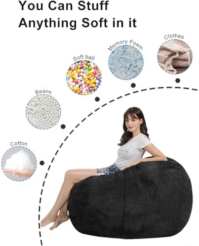 [Sherpa Cover] Bean Bag Chair: 3 ft Bean Bag Chairs for Adults/Kids with Filling,Ultra Soft Faux Fur Fabric,Memory Foam Bean Bag with Filler Included - 3 Foot,Black