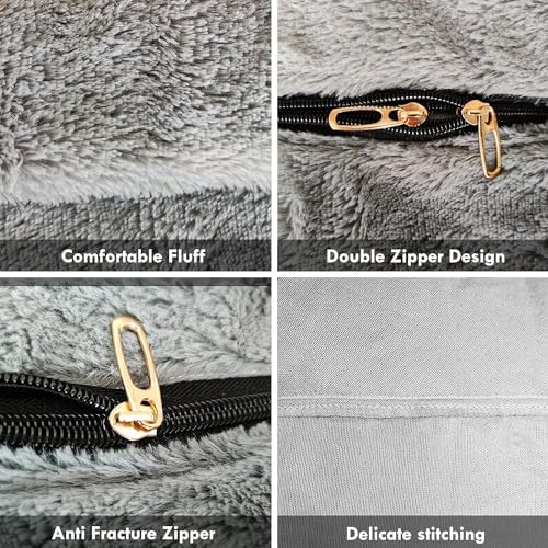 Giant Bean Bag Chair for Adults Cover 5FT Oversize Bedroom Lounge Large Sofa Couch(Cover ONLY,No with Filler)Fluffy round Comfortable Sitting Chair for 2 Seater or 4 Seater Fun Chair Light Grey