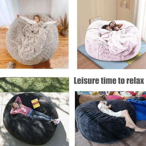 Bean Bag Chair Cover for Kids Adults(Cover Only,No Filler),Big Round Soft Fluffy PV Velvet Washable Lazy Sofa Bed Cover for Adults,Living Room Bedroom Furniture Outside Cover (Gray, 5FT)