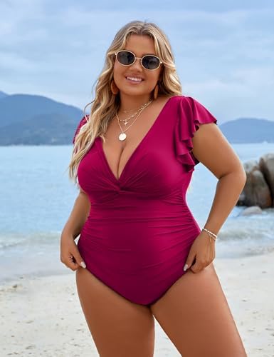 Features: Cute one piece swimsuit for women features a deep v neckline, removable padding, lace-up back, chic twist, and ruffle sleeves design. The ruched details on the front flatter your tummy and make you feel confident. The twist front give you more support while also being stylish.