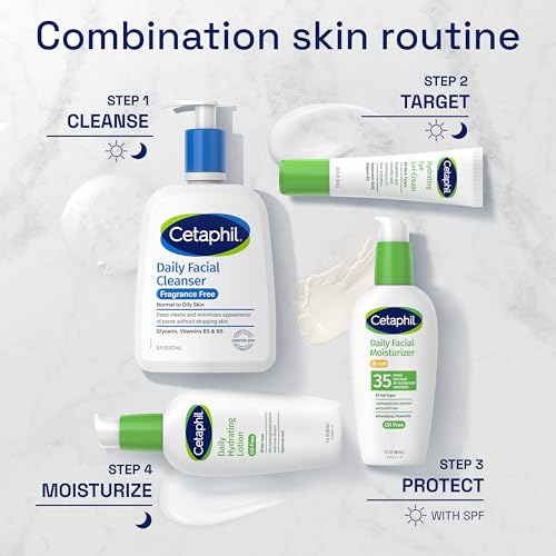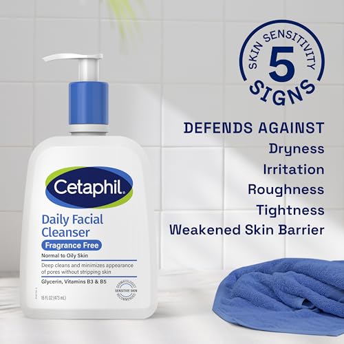 Step up your skincare regime with CETAPHIL Daily Facial Cleanser, a deep cleansing, gentle foaming formula designed for sensitive, combination skin. Ideal for daily use, this cleanser gently yet effectively removes dirt, excess oils, impurities and pollution microparticles, without leaving the skin dry or tight. Formulated with a new blend of key ingredients: hydrating glycerin, panthenol (vitamin B5) to hydrate, soothe and preserve the skin barrier, and niacinamide (vitamin B3) to help smooth skins texture and retain skins moisture barrier. CETAPHIL Daily Facial Cleanser minimizes the appearance of pores without stripping the skin of its natural oils and moisture barrier, helping to defend against 5 signs of skin sensitivity. Clinically proven to be suitable for sensitive skin, this gentle cleansing formula is hypoallergenic, non-comedogenic, and free of parabens and sulfates.