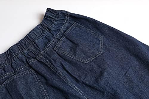 CHARTOU Women's Retro Elastic High Waist Frayed A-Line Maxi Denim Skirt with Pockets