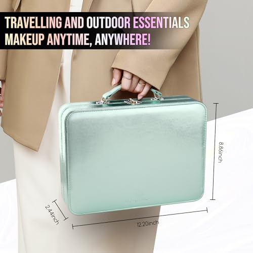 Relavel Travel Makeup Train Case Makeup Cosmetic Case Organizer Portable Artist Storage Bag with Adjustable Dividers for Cosmetics Makeup Brushes Toiletry Jewelry Digital Accessories Black