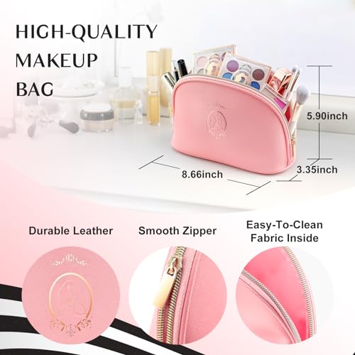 BAGSMART Makeup Bag Travel Toiletry Bag, Puffy Padded Make Up Bags for Women Makeup Organizer Case, Wide-open Pouch Purse Travel Essentials Toiletries Accessories Brushes, Pink
