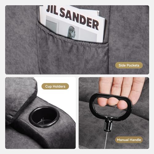 Customer Reviews 4.2 out of 5 stars 6 4.0 out of 5 stars 199 3.8 out of 5 stars 22 4.5 out of 5 stars 16 3.7 out of 5 stars 23 Price $1,349.99 $1,269.99 $295.99 $109.99 $399.99 Side Pockets ✔ ✔ ✔ ✘ ✔ Material velvet PU Leather Fabric Textile PU Leather color Grey Black Grey Beige Black Product Dimensions 32"D x 32"W x 39.05"H 35.8"D x 37.4"W x 40.94"H 29.5"D x 32.5"W x 40"H 19"D x 21"W x 30"H 28.74"D x 32.5"W x 40"H Recliner Chair ✔ ✔ ✔ ✘ ✔ Brief content visible, double tap to read full content.Full content visible, double tap to read brief content.