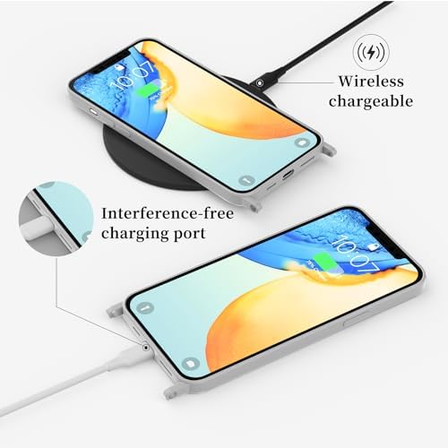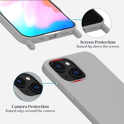 Compatible with iPhone 13 Case with Lanyard Crossbody iPhone Case with Strap Adjustable Shockproof Drop Protection Silicone Phone Cover for iPhone 13 Gray