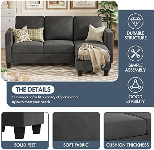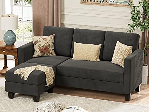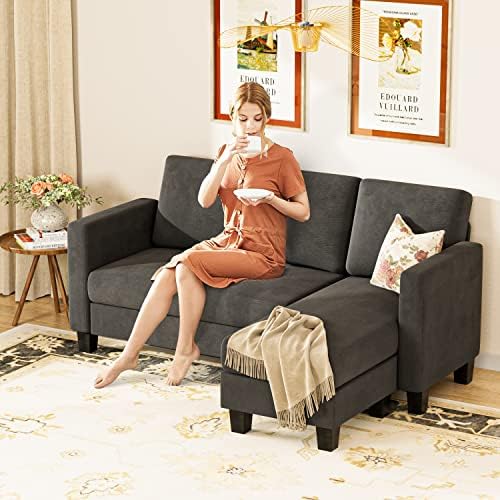 Acurax Convertible Sectional Sofa Couch, L-Shaped 3 Seat with Linen Fabric and Movable Ottoman, for Small apartments, Living Room and Office, Dark Gray