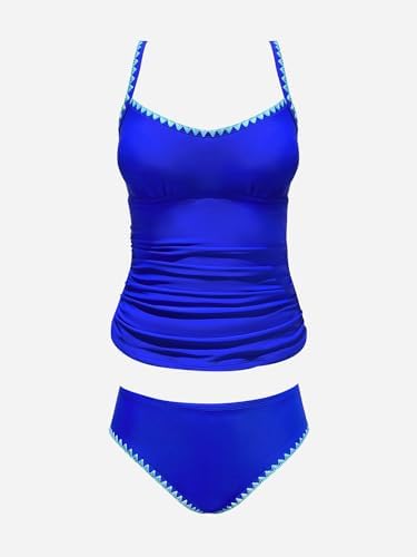CUPSHE Women's Tankini Sets Scoop Neck Two Piece Swimsuit Mid Rise Adjustable Straps Shell Stitched (XS-4XL)
