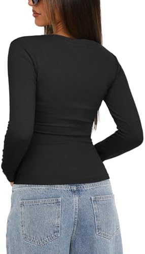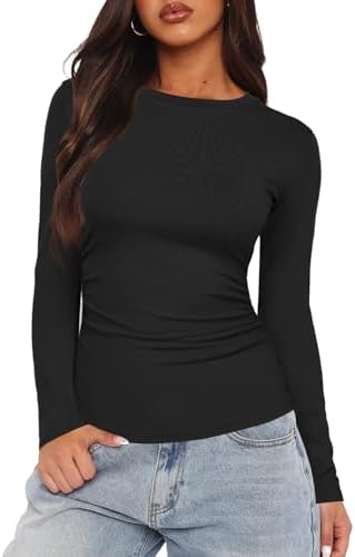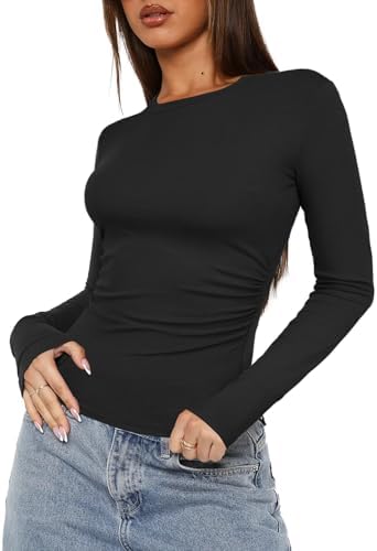 Darong Womens Long Sleeve Shirts Basic Fall Tops Fall Fashion Ruched Slim Fitted Y2k Tops