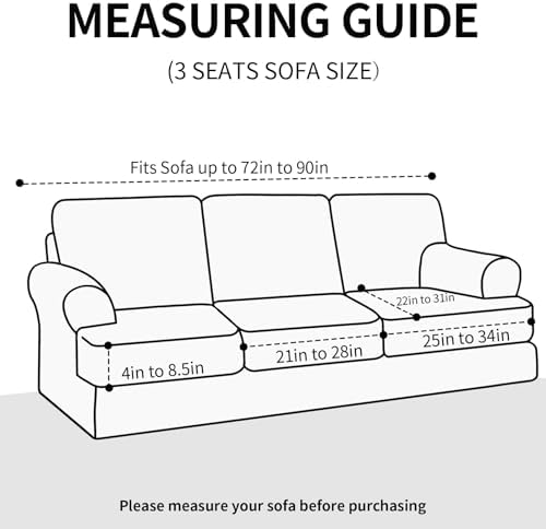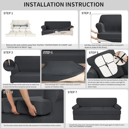 A great couch cover. Fits well, and looks good. I really like the individualcushion covers. The straps in them made a good fit. No saggy cushions. The material is soft and love the dark gray color. I also like the way it completely covers the whole couch, even the arms fit well under it. Keeps cat from scratching it, no open spaces.Keeps couch well protected,and fit is incredible.I highly recommendthis cover.