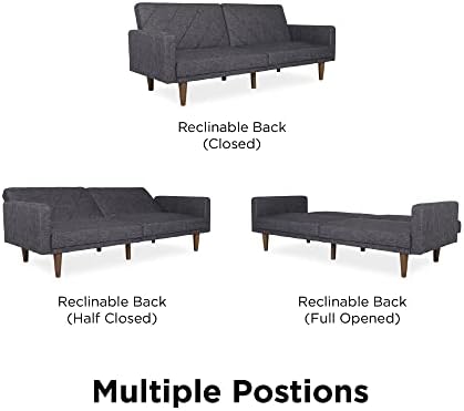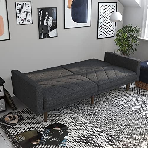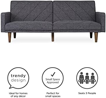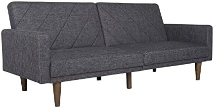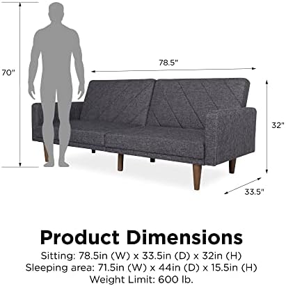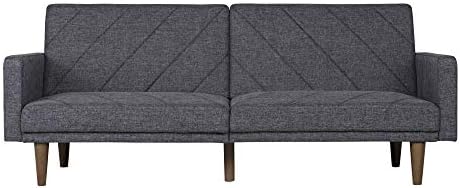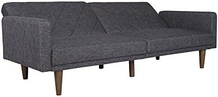 New trends in furniture design are bringing back the days of bold lines, low-profile shapes and wood accents. The Paxson Futon combines all three for a look that will add a little modern retro to your home. Choose from a variety of finishes with intricate diagonal stitching—a real mid-century must-have. The rounded solid wood legs add a touch of warmth and offer plenty of extra support. Plus the split back design of this sleeper sofa is made to offer each guest their own level of comfort, from sitting up to lounging back. Or lay flat both seat back cushions to create a comfortable place for overnight guests to sleep. The Paxson is ideal for small spaces while always making a big, bold statement. We’ve also included padding under the feet so your floors will always look great.