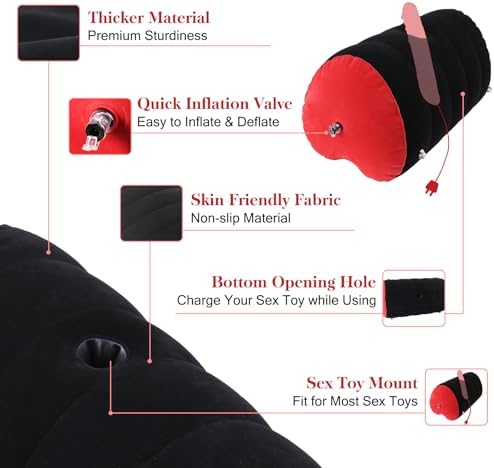 The pillow is lovely and comfortable. It holds weight really well and has a pleasant velvety texture.It's pretty easy to use and it's not too difficult to inflate. I used a balloon pump to inflate it!The pillow feels pretty durable it doesn't feel cheap at all. Plus you could use it to rest on if you wanted.The straps that came with it feel decent as well and comfortable to wear. It's a pretty nice pillow for what it is and I'd definitely recommend getting it! The part where the straps hook to the pillow feels sturdy so I'm not worried about it ripping at all. I'm very pleased!I gave the pillow to my partner as a gift and they seem to really like it!The heart shape reminds me of a big roast and some times I just want to hug the pillow because it's pretty cute looking.