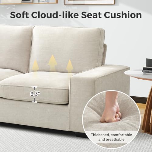 EASELAND Sofa Couch, 88" Chenille Loveseat for Living Room, 3 Seater Lounge Sofa for Bedroom with Removable Back and Seat Cushions, Modern Deep Seat Comfy Couch with Solid Wood Legs and Armrest(Beige)