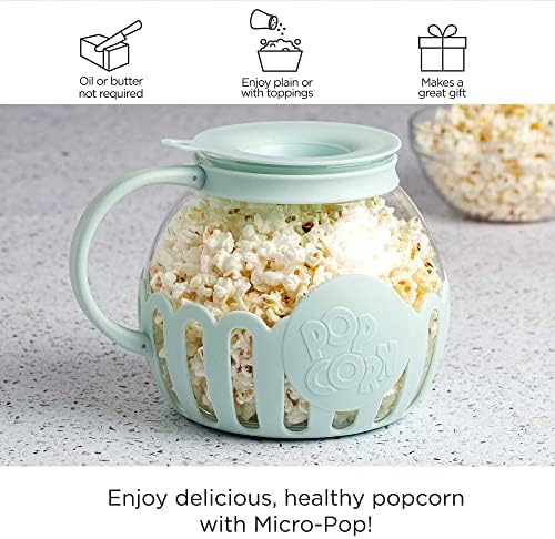Pops great, only 5 kernels didn't pop.The smaller quantity the popper pops up is a good thing since my spouse doesn't eat popcorn. The melting butter in the lid was also a plus. My induction stovetop popper was not doing a good job. Our living room and kitchen are red, the assorted colors are are very attractive and you should be able to find one to blend with your decor. The design is creative, useful, and well done; the colorful plastic/silicone protects the glass and is very functional as a handle. Overall, great popper and serving bowl, it also cleans easily in the sink.