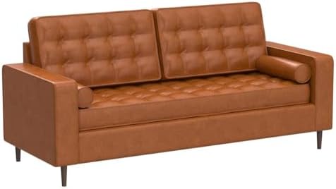This square arm couch is finished with buttonless tufting, tapered wooden legs, and delicate piping to create a modern feel that expertly enhances your living space.