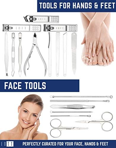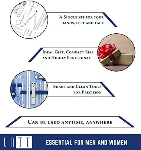 The ENTT Manicure/Pedicure Kit includes 18 tools catering to your face, hands, and feet. Each tool is thought and made perfectly for all your hygiene and grooming needs.