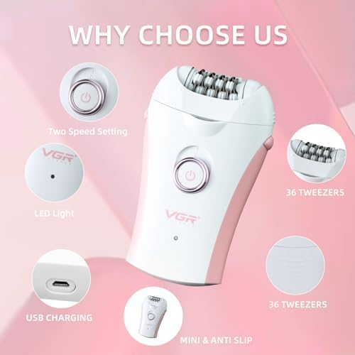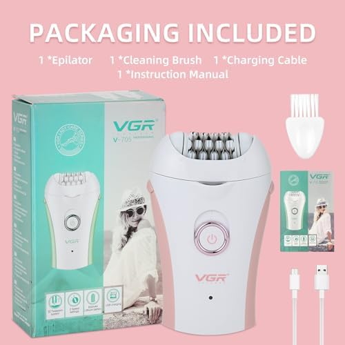 Unique design: The streamlined design makes the product more in line with practical usage needs. The exquisite packaging can be used as a gift directly for wives, family, or friends. The instruction manual in 6 languages includes English, German, French, Italian, Spanish, and Portuguese, making the manual more accessible and understandable. USING TIPS: 1. After depilation, please moisturizing the skin with some entle and low chemical content body lotion. 2. To removal after hot water bath around 15 minutes. At this time the pores are dilated, the pain is minimized. 3. Hold the skin taut with your other hand, It would help the hairs come out easier and noticeably, reduces the discomfort you feel. 3. Hold the epilator at 90 for maximum skin and move slowly at gliding it along with your skin contact at all times. But please against the growth direction of the hair. Features: 2 Speed Setting USB Charging Built-in LED Light Attached brush Dust Cover Detachable Working Area The package included: 1 * Hair epilator 1 * USB cable 1 * Brush 1 * Dust cover