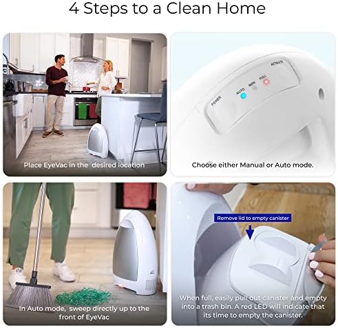 The EyeVac Home is perfect for your kitchen, walkway, mud room, playroom or any room with hard flooring. This compact touchless canister vacuum is ready for any mess your home may have. Handle dirt, dust, sand and more with ease! No more bending over with a dustpan!