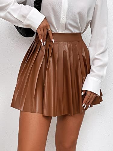 Floerns Women's PU Leather High Waisted Pleated Skirt Faux Leather Party Skater Mini Skirt