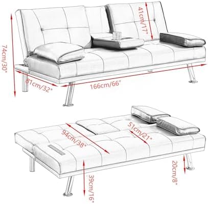 Futon Sofa Bed Modern Folding Futon Set Velvet Convertible Recliner Lounge for Living Room with 2 Cup Holders, Removable Armrests,The overall skeleton and limbs are made of stainless steel for strength, stability and durability, with a maximum weight capacity of 700 lbs