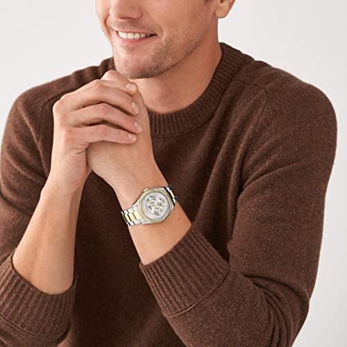 Brand, Seller, or Collection Name Fossil Model number FS5987SET Part Number FS5987SET Item Shape Round Dial window material type Crystal Display Type Analog Clasp Double Locking Foldover Clasp Case material Stainless Steel Case diameter 42 millimeters Case Thickness 12 millimeters Band Material Stainless Steel Band size Mens Standard Band width 22 millimeters Band Color Multicolor Dial color Silver Bezel material Stainless Steel Bezel function Stationary Calendar No Calendar Special features Second Hand Item weight 3.53 ounces Movement Quartz Water resistant depth 50 Meters Warranty If this product is sold by Amazon, please review the manufacturer’s website for warranty information. If this product is sold by another party, please contact the seller directly for warranty information for this product. You may also be able to find warranty information on the manufacturer’s website.