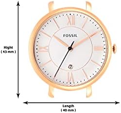 Brand, Seller, or Collection Name Fossil Model number ES3988 Part Number ES3988 Model Year 2018 Item Shape Round Dial window material type Mineral Display Type Analog Clasp Buckle Metal stamp no-metal-stamp (Fashion only) Case material Stainless Steel Case diameter 36 millimeters Case Thickness 8 millimeters Band Material Leather Band size Women's Standard Band width 14 millimeters Band Color Blush Pink Dial color White Bezel material Stainless Steel Bezel function Stationary Calendar Date Special features Water Resistant Item weight 1.09 ounces Movement Quartz Water resistant depth 100 Feet Warranty Manufacturer’s warranty can be requested from customer service. Click here to make a request to customer service. Brief content visible, double tap to read full content.Full content visible, double tap to read brief content.