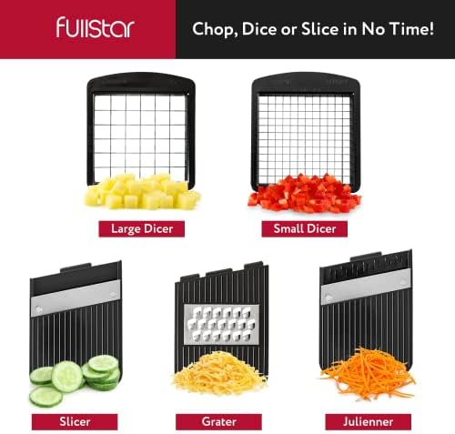Fullstar All-in-1 Vegetable Chopper, Mandoline Slicer & Cheese Grater - French Fry Cutter & Veggie Dicer - Cheese Slicer - Includes Bonus Handheld Spiralizer (6 in 1, Black/White)