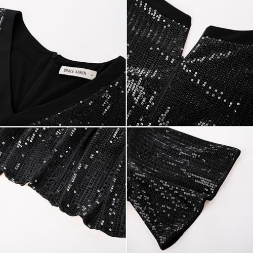 These sequin dresses for women feature A-Line, empire waist, short sleeve, v-neck, high waist, midi length. The formal dress provide you a feminine and elegant silhouette. The sparkly glitter dress is easily matched with heels or accessories to create gorgeous look.