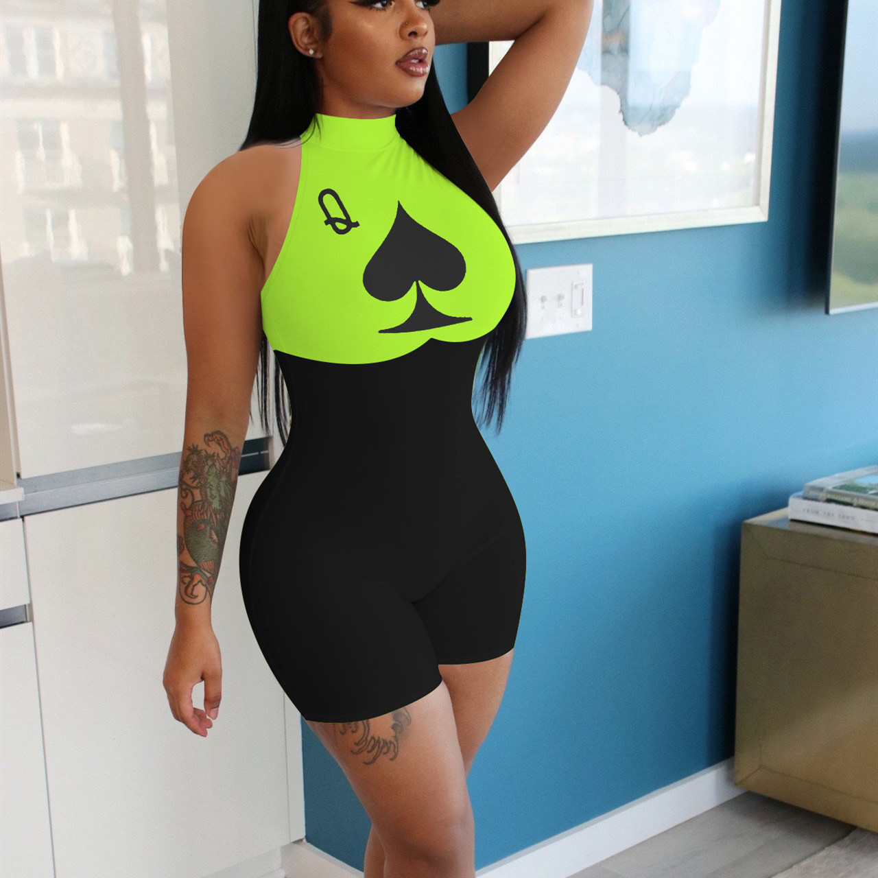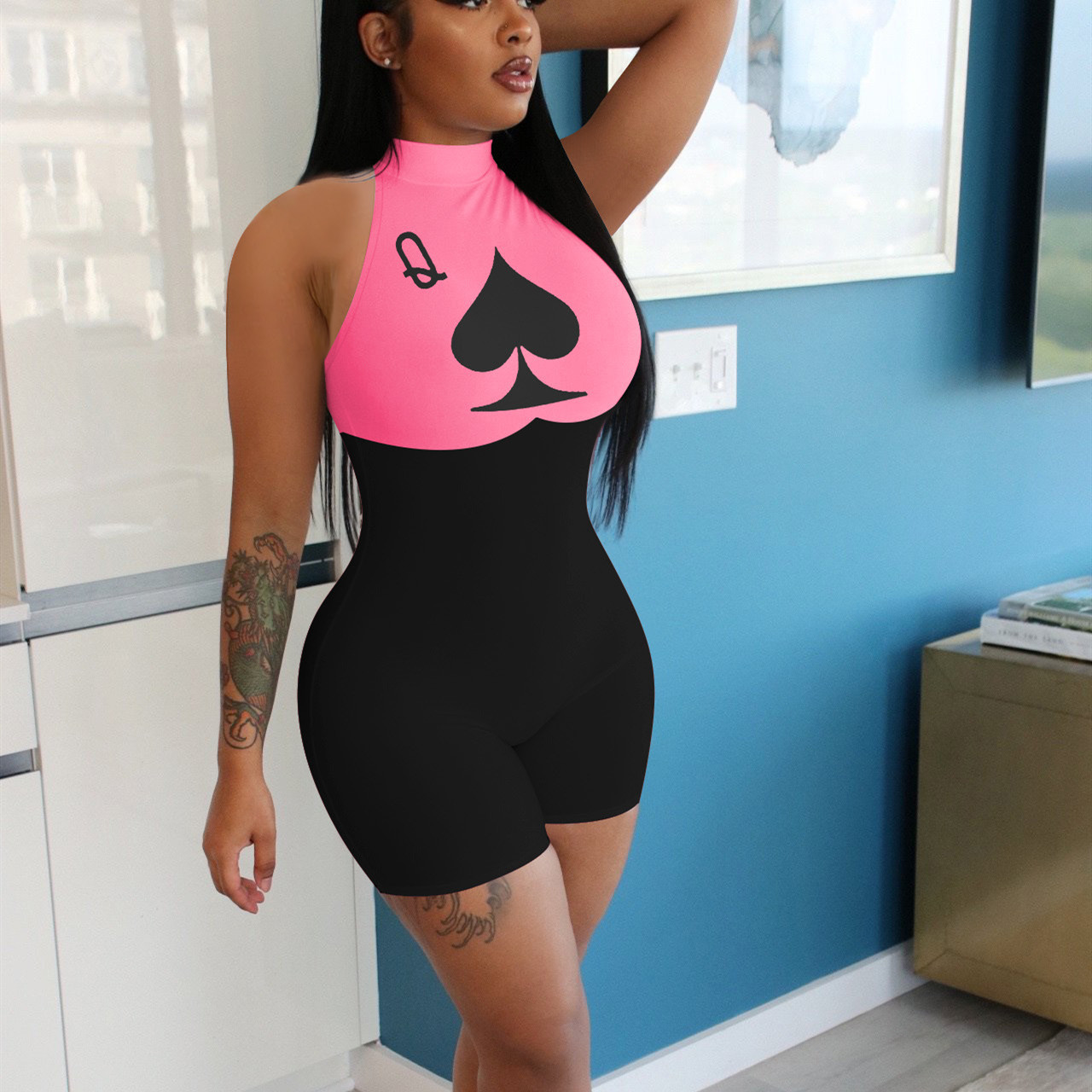 hirigin Printed Sexy Jumpsuits for Women Sleeveless Bodycon Rompers Club Wear Summer Woman One Piece Outfit New