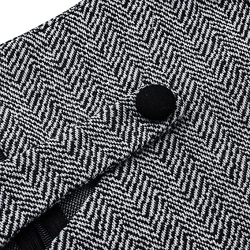 LKOUS 2 Piece Work Suits for Women's Houndstooth Print Buttons Open Front Long Sleeve Coat + Long Pants Casual Clothes