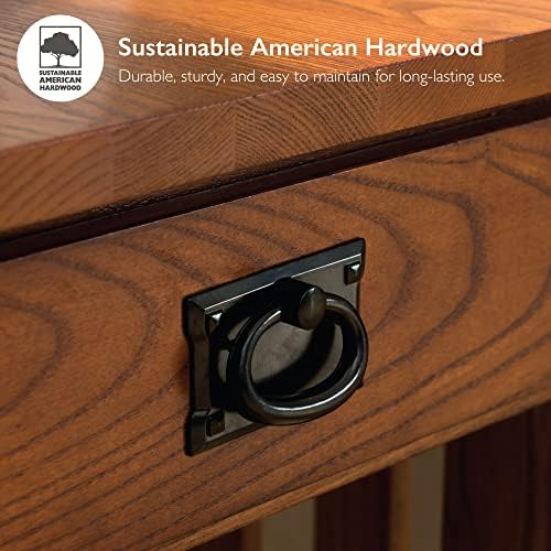 The Leick Home Mission Impeccable Narrow Living Room End Table showcases a beautiful real wood grain, slatted sides, and blackened hardware for an authentic Mission style. A sturdy shelf below the single drawer offers more than just a pretty face in the durable, solid wood design. Finished in medium oak, this quality crafted small side table will add a warm shaker design to your living room or bedroom. Built from solid, North American ash lumber and protected with a durable, hand-rubbed finish, all it takes is a few minutes to attach the slatted post assemblies, and your home's newest addition is at your service. This wood side table is perfect for a living room couch end table, bedroom nightstand, or office printer stand. Easy to assemble with pre-assembled drawer. Designed and manufactured by Leick Home, the trusted source for quality home furnishings for every taste and budget.