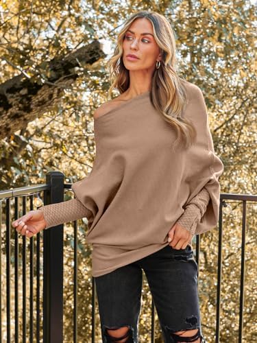 LILLUSORY Womens Batwing Oversized Sweaters Assymetrical Off The Shoulder Boat Neck Wrap Tunic Tops Fall Fashion Cloth Outfit