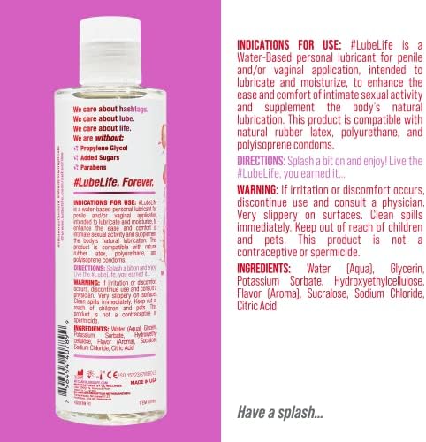 Lube Life Water-Based Strawberry Flavored Lubricant, Personal Lube for Men, Women and Couples, Made Without Added Sugar, 8 Fl Oz
