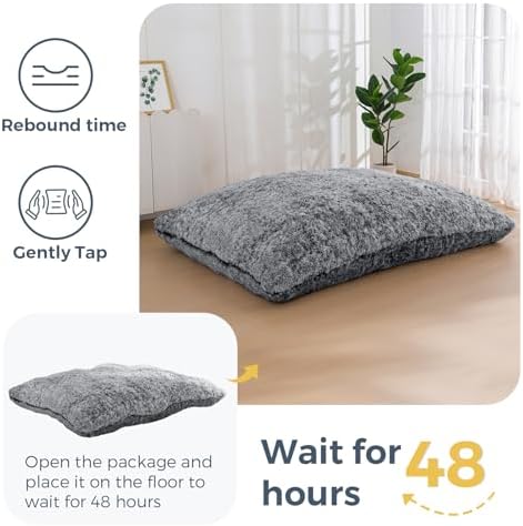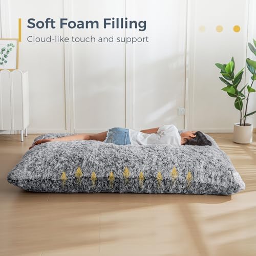 Good:Huge and well stuffed floor cushion/bedBig enough for large folks to jump and sprawl out onVery soft and comfyMixed/JFYI:To be honest, I cannibalized mine for the foam to fill a preferable cover, but the leftovers still make a nice floor cushion in front of our couch for lower tier seatingNot Great:Cover looks and feels like a shag carpet; soft but not the most comfortable or nice to look at