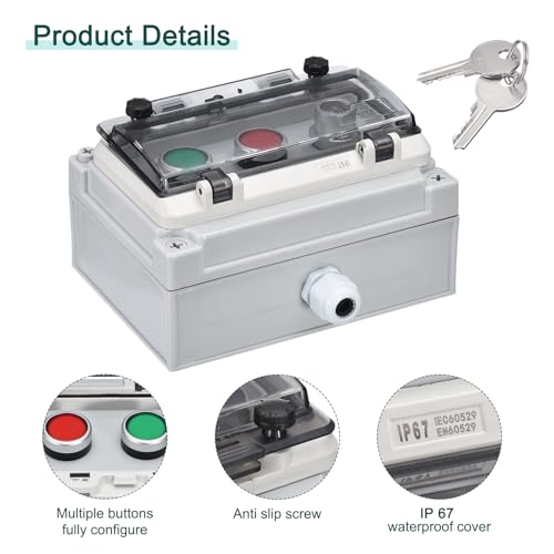 The push button box provides a high level of protection with its IP67 waterproof rating, making it suitable for both indoor and outdoor use.The buttons have stable and reliable contacts, while the engineering plastic construction makes them resistant to breakage.