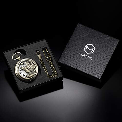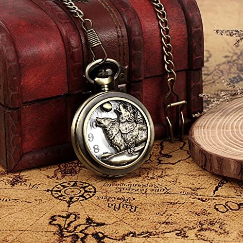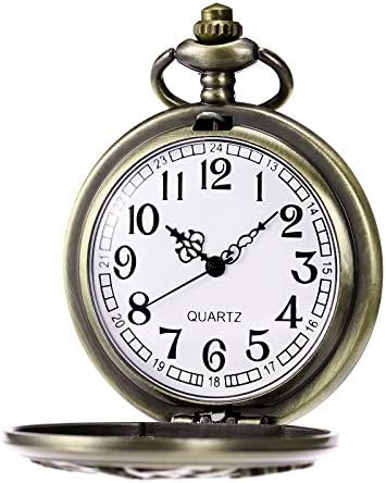 Features: 1.Vintage bronze pocket watch is the best gift for your family, seniority and your friends 2.100% brand new with excellent workmanship 3.Elegant design with precise quartz movement 4.Dial color in white with Arabic numerals in Black could see time clearly 5.Removable key chain with a clip at the end, long necklace for wearing the pocket watch as pendant 6.Nice addition to a formal or casual dressing or collectingHow to use/set quartz pocket watch? Press the crown at the top of watch, the front plate will open. Pull the crown away from base of the watch and turn the crown clockwise until reaching the exact time. Specification (1 cm=10 mm=0.394 inch) (approximate) Case diameter: 47mm(1.85") approx. Case thickness: 15mm(0.59") approx.(cover included) Case Material: Alloy Chain Length: 360mm(14.17") approx. (hook included)Necklace Length: 800mm(31.52") approx. (hook included) Chain & Necklace Material: Alloy Package Included: -1 x Pocket Watch -1 x Gift Box1 x User Manual -1 x Chain1 x Necklace