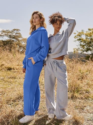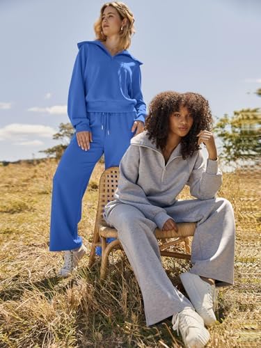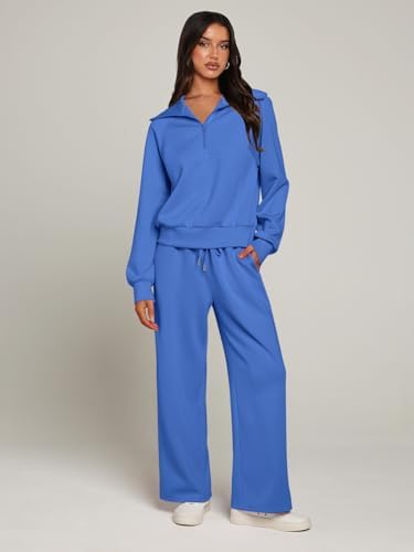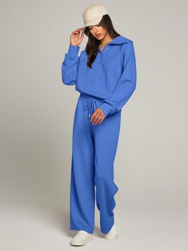 MEROKEETY Women's 2 Piece Outfits 2024 Long Sleeve Half Zip Sweatshirt Wide Leg Sweatpants Lounge Sets