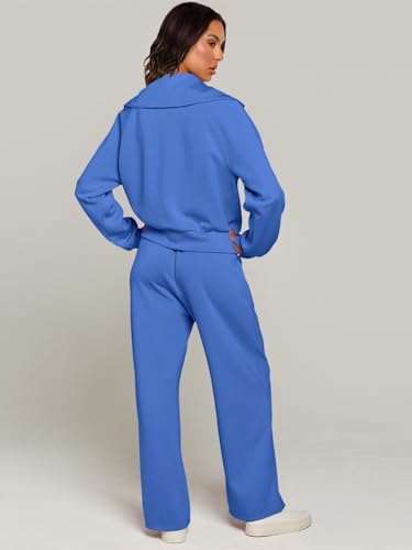 MEROKEETY Womens Long Sleeve Half Zip Sweatshirt Wide Leg Sweatpants Lounge Set