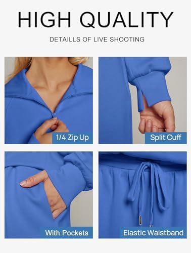 • MEROKEETY Womens Casual Two Piece Outfits Quarter Zip Pullover Sweatsuits