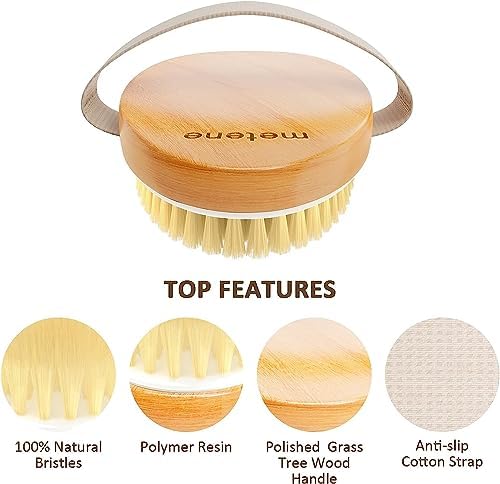 metene dry body brush includes 2pcs shower brush at least an adhesive hook,and packed in premium quality box.