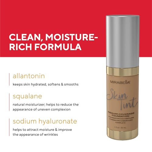 Mirabella Skin Tint Creme Liquid Foundation Makeup, Oil-Free Mineral Foundation for Medium Coverage - w/Hyaluronic Acid, Squalane, & Allantoin for All Skin Types - IIN Neutral