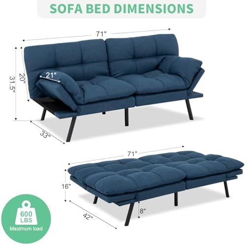 This futon is fantastic! With a weight capacity of 600 pounds, it easily accommodates my family and friends. The high-density memory foam makes it super comfy for both sitting and sleeping. I appreciate how versatile it is; I can adjust the backrest and armrests to suit everyone’s needs. It's perfect for my game room and looks great too.