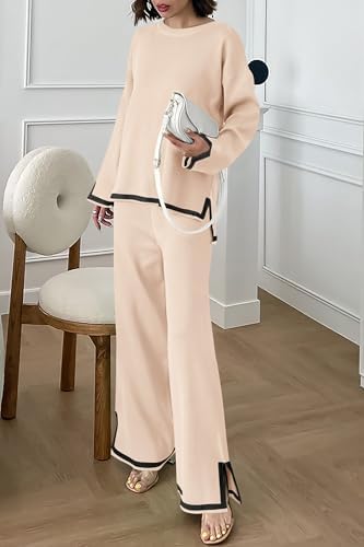 PRETTYGARDEN Womens Trendy Crewneck Sweater Top and Palazzo Pants Set