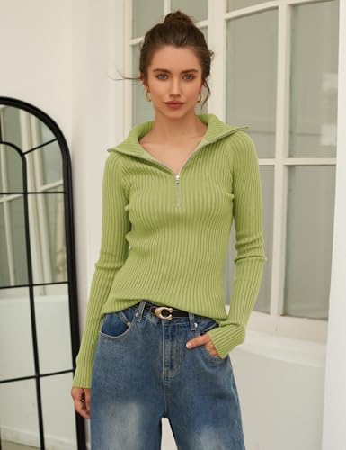 Crafted in a soft knit base, this trendy sweater is designed with half zipper, collared v neck and longer sleeves.